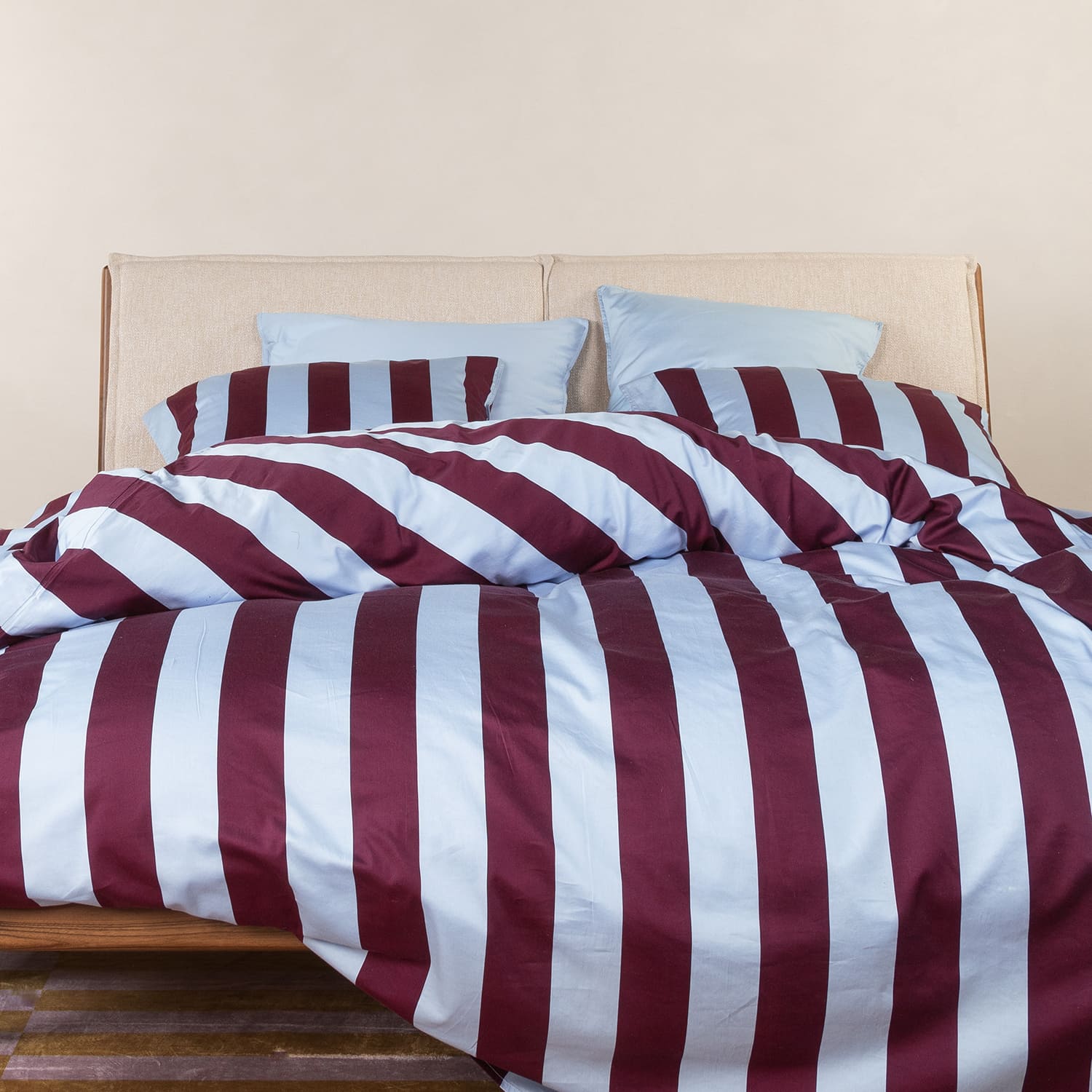 Essenza Minte Stripe Mauve Wine Ice Blue Satin Bettwäsche