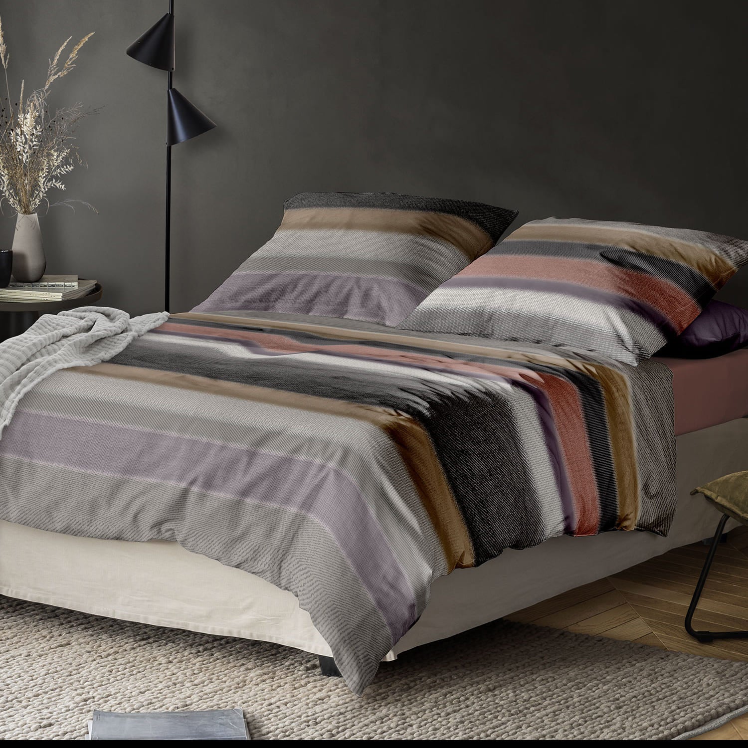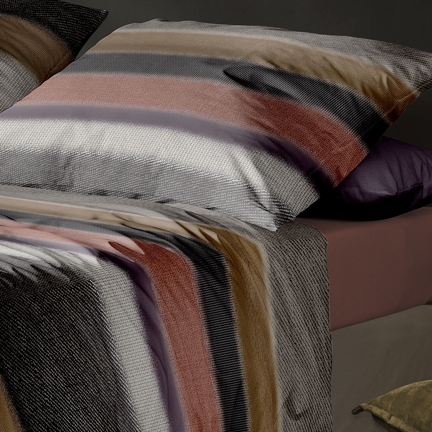 Die Irisette Edel-Fein-Biber Bettwäsche "Koala" im attraktiven Design Multi (Modell 8617-90) vereint Gemütlichkeit und Stil. Mit ihrem ausgefallenen Design aus unterschiedlich fein gemusterten Blockstreifen in quer gestreifter Optik bringt diese Garnitur eine besondere Note in Ihr Schlafzimmer.