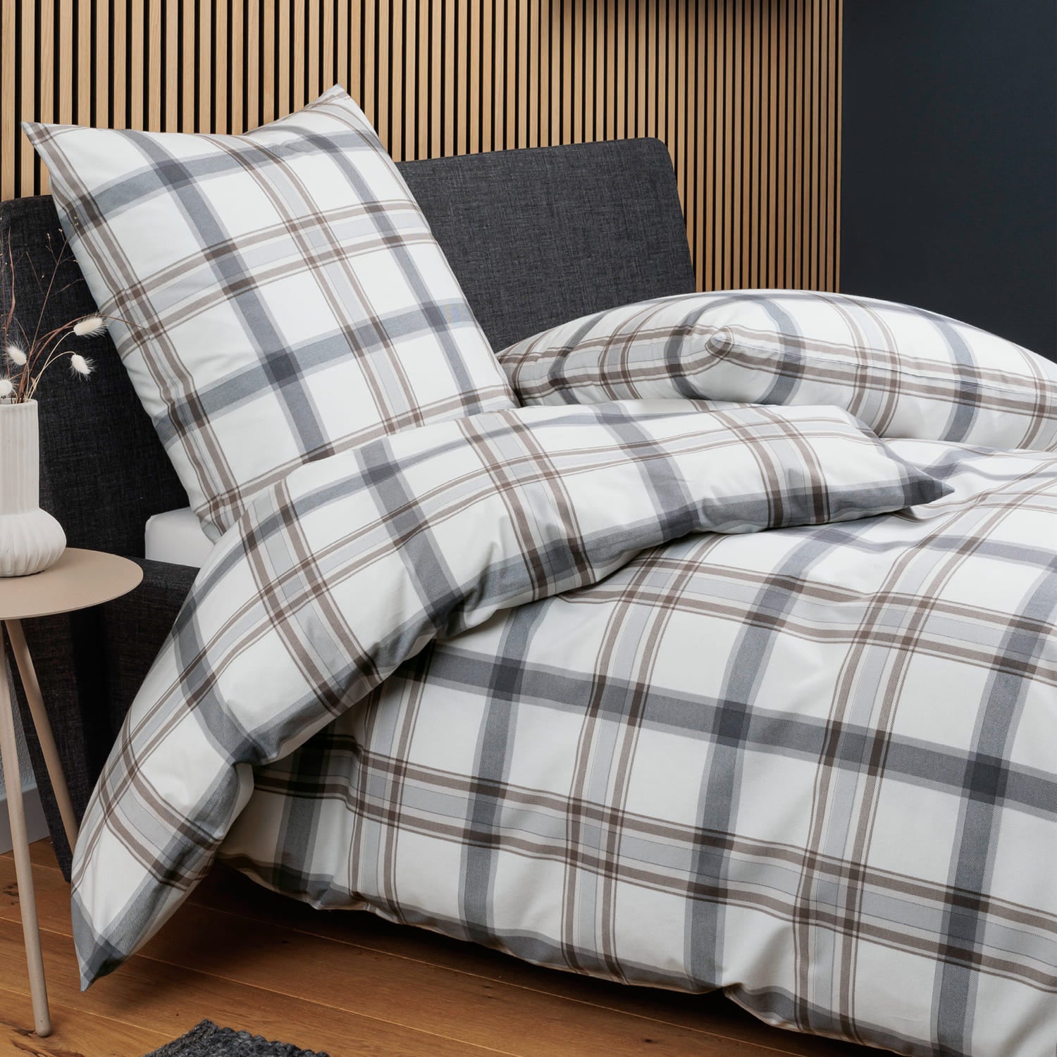 • Elegantes Design CORTINA: Modernes, grafisches Muster mit Struktur in stilvollen Silber- und Anthrazittönen für eine zeitlose Schlafzimmer-Optik.