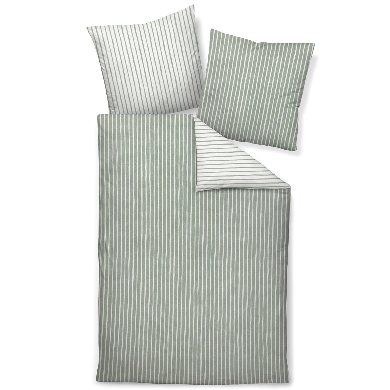 - Wendebettwäsche: Zwei Streifen-Optiken in Salbeigrün für variable Gestaltung.