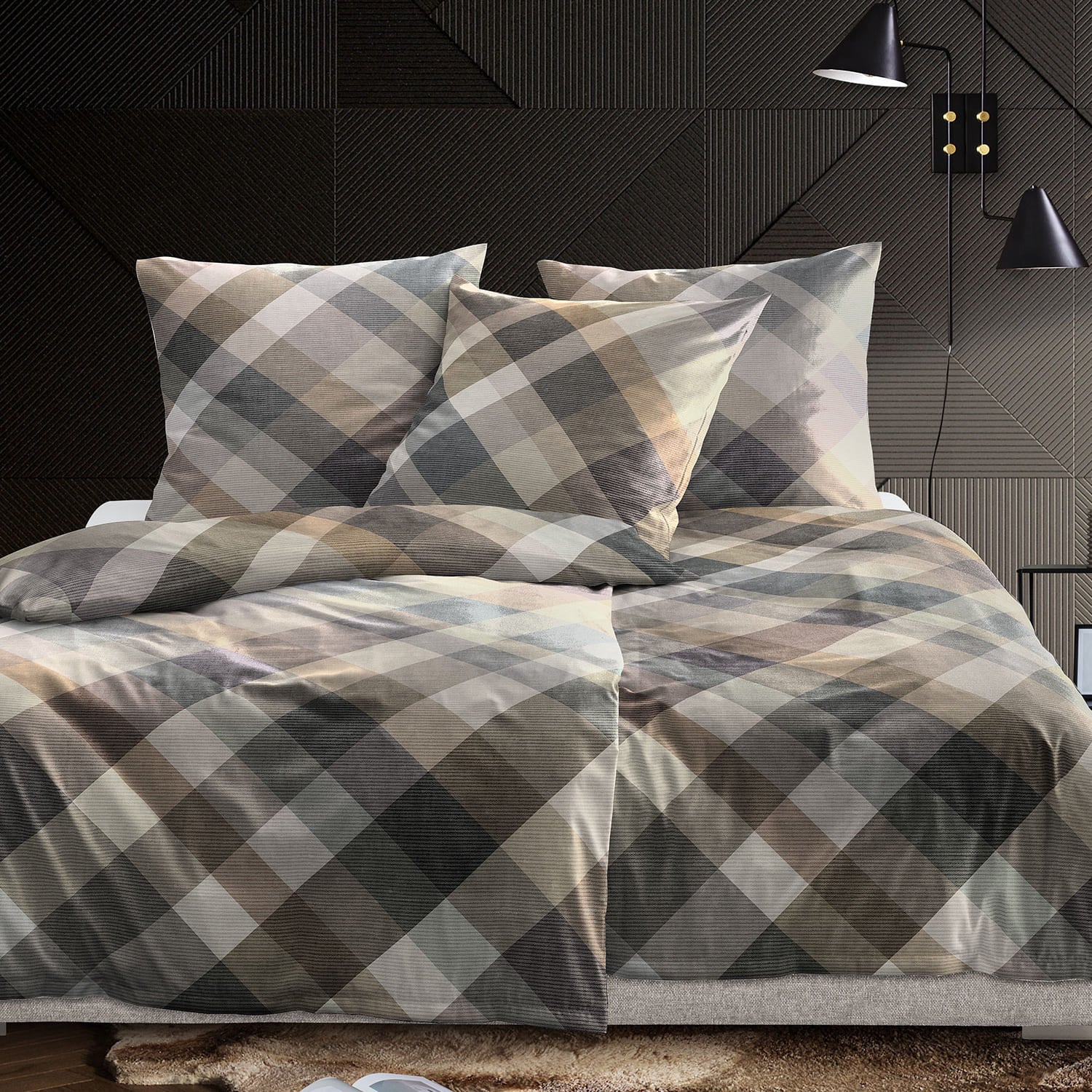 Holen Sie sich mit der Irisette Flausch-Cotton Bettwäsche "Zobel" (Dessin 8631-80) in der Farbe Natur ein echtes Premium-Produkt für die kalte Jahreszeit. Das ansprechende Rauten- und Karomuster in ruhigen Natur-, Braun- und Grautönen sorgt für eine klassisch-moderne Ästhetik in Ihrem Schlafzimmer.